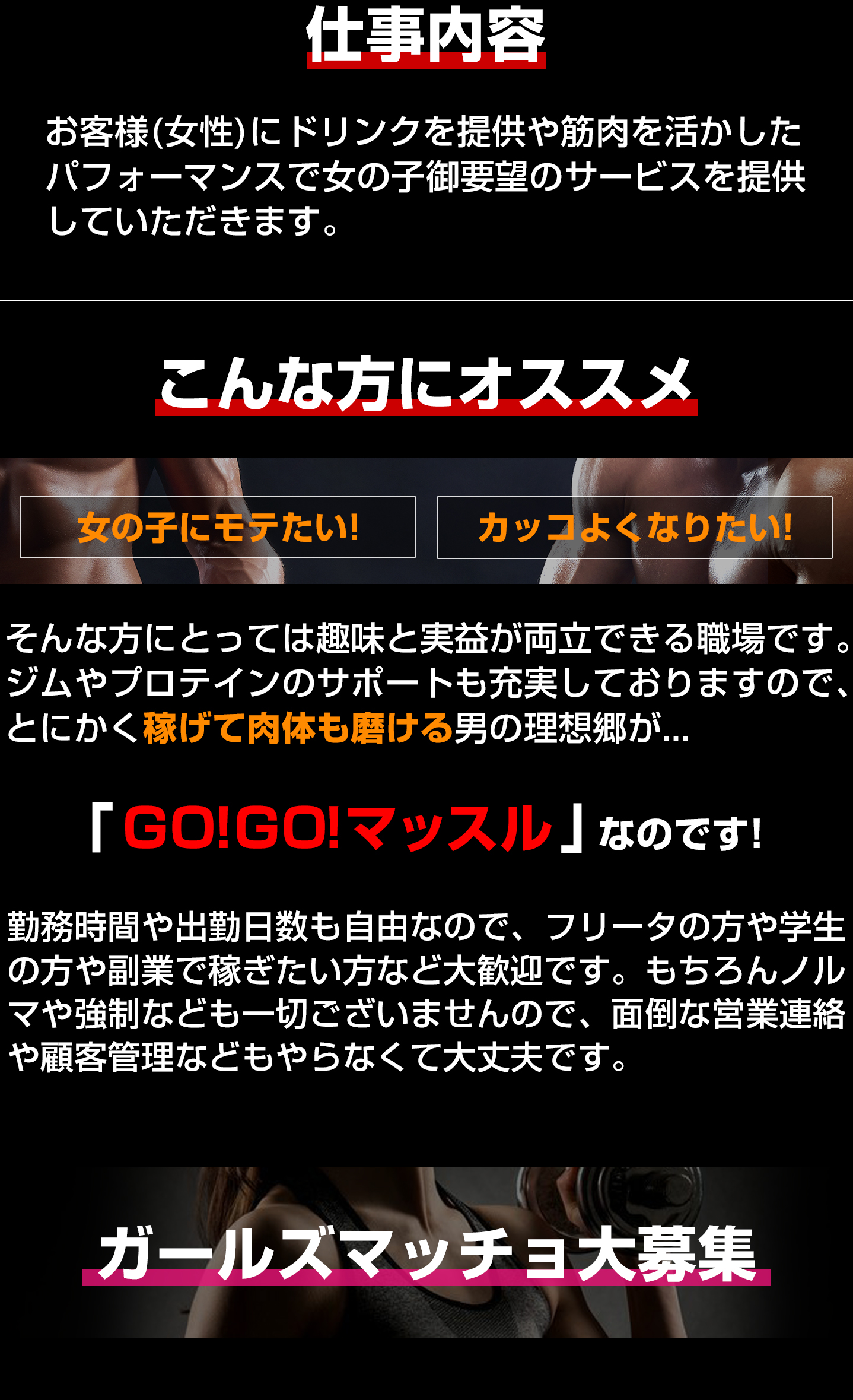 大丈夫です!お店のコンセプトが「筋肉」なので筋肉がある方のほうが人気になりやすいので結果的に稼げる可能性が高いです。